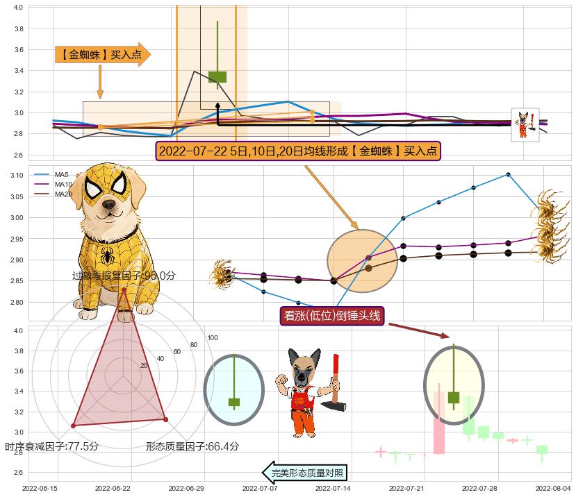 | 2 🅚:塔形底 | 圆底 ➕ 🎢:【金蜘蛛】买入点均线组合买入点信号形成后,猜想三条均线周期内的交易者都看好后市,持续上涨 ☞ 看多信号 ⇥ 【均线】交织【🅚线】⇥ 综合量化分数: 54 | > |