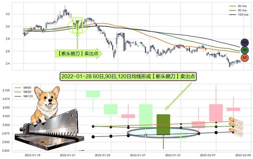 形态多维评估: ⚀ 2022-01-28日显现 60日-90日-120日均线 【断头铡刀】卖出点 看空信号,后市看跌,卖出