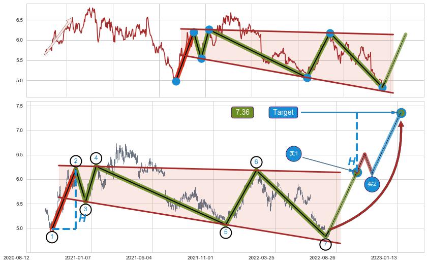 ➢ 2022-07-15到达第❸价格目标位置4.90