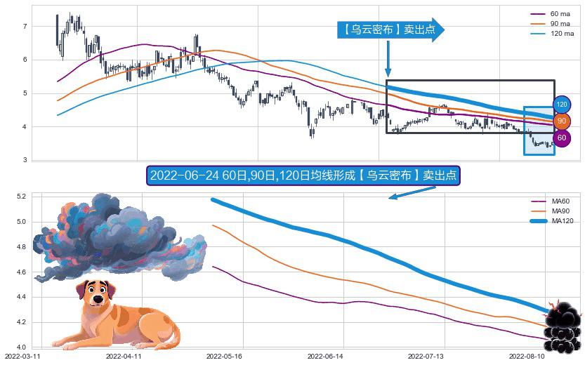 形态多维评估: ⚀ 2022-05-05日-2022-08-12日显现 60日-90日-120日均线 【乌云密布】卖出点 看空信号,后市看跌,卖出