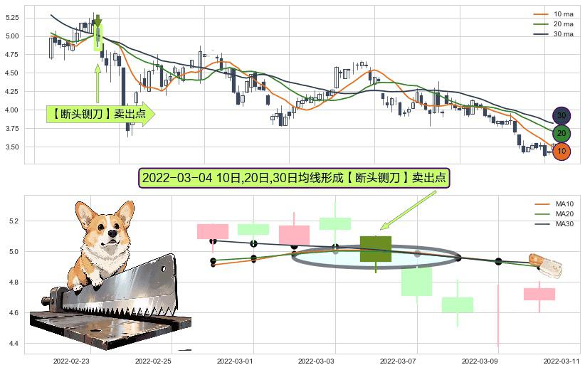 形态多维评估: ⚀ 2022-03-04日显现 10日-20日-30日均线 【断头铡刀】卖出点 看空信号,后市看跌,卖出