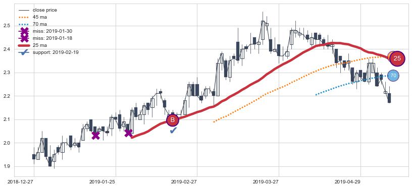 上涨趋势2018-12-27-2019-05-09,均线25确认关键支撑1处