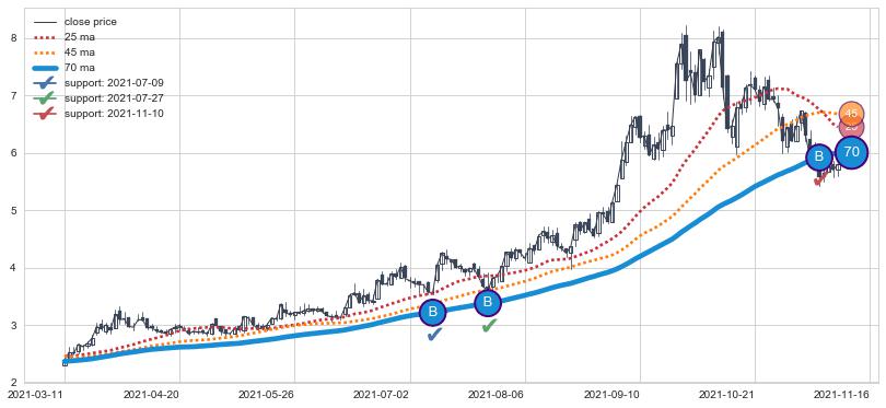 上涨趋势2021-03-11-2021-11-16,均线70确认关键支撑3处