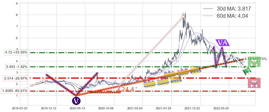 ♘ 阻力价格位4.72,可信任强度66.21%,距离最后交易2022-08-12形成的收盘价格3.540相差 +33.35%