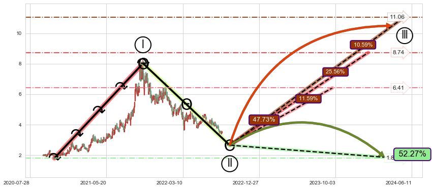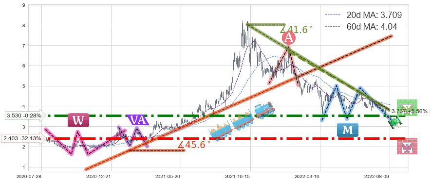 ♘ 支撑价格位2.403,可信任强度95.80%,距离最后交易2022-08-12形成的收盘价格3.540相差 -32.13%