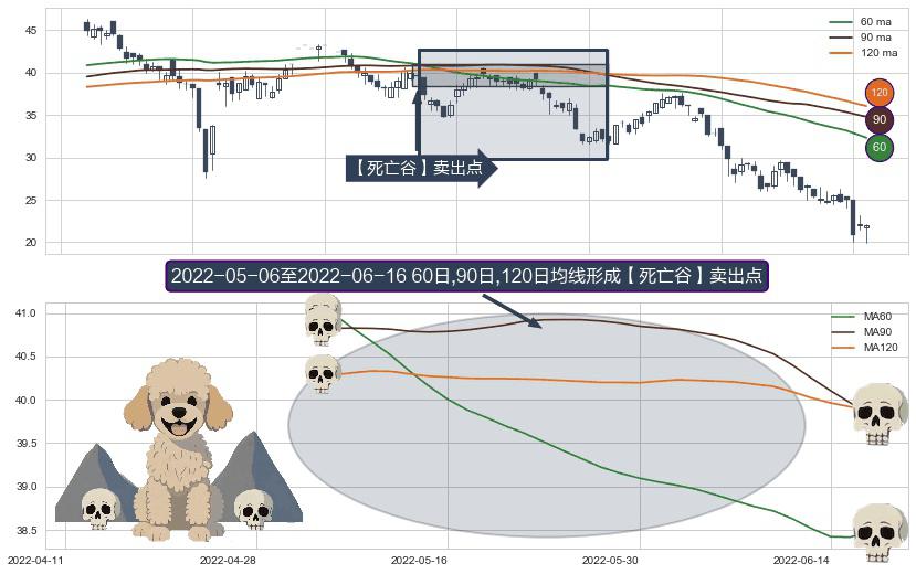 形态多维评估: ⚀ 2022-05-10-日至2022-06-16-日显现 60日-90日-120日均线 【死亡谷】卖出点 看空信号,后市看跌,卖出