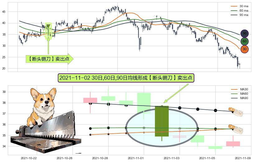 形态多维评估: ⚀ 2021-11-02日显现 30日-60日-90日均线 【断头铡刀】卖出点 看空信号,后市看跌,卖出
