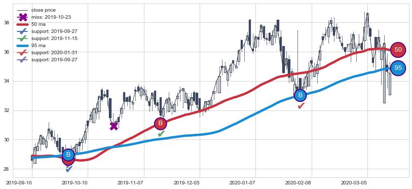 上涨趋势2019-09-10-2020-03-17,均线50, 95确认关键支撑3处