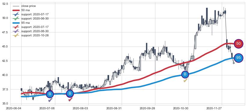 上涨趋势2020-06-04-2020-12-08,均线50, 95确认关键支撑3处