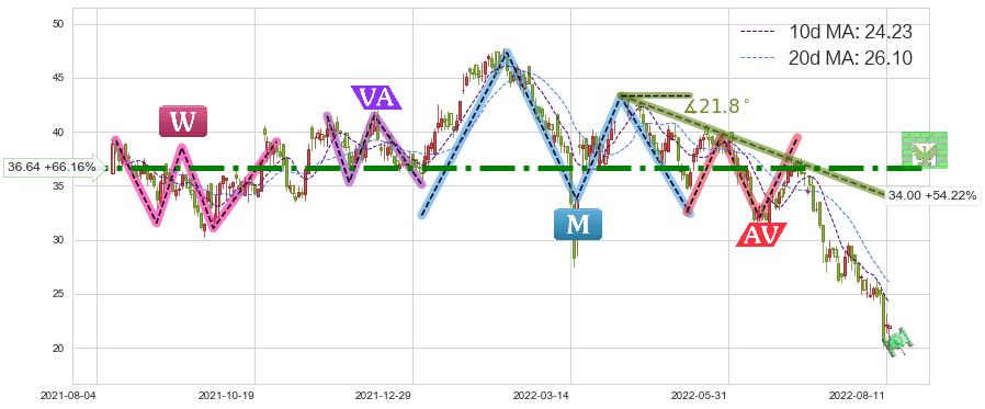 ♘ 阻力价格位36.64,可信任强度93.19%,距离最后交易2022-08-12形成的收盘价格22.05相差 +66.16%