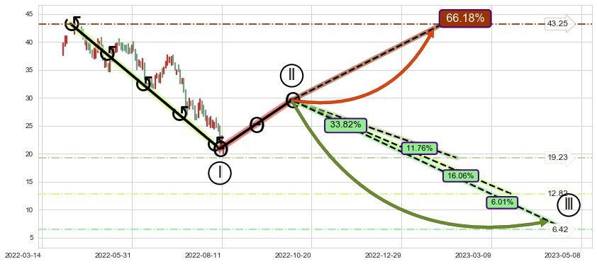 ➣ 大趋势循环浪继续向下概率33.82%