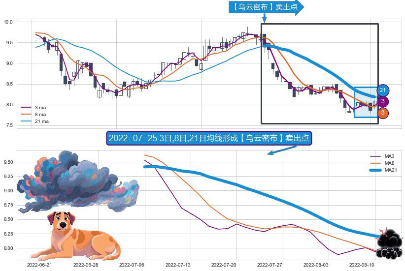 形态多维评估: ⚀ 2022-07-06日-2022-08-11日显现 3日-8日-21日均线 【乌云密布】卖出点 看空信号,后市看跌,卖出