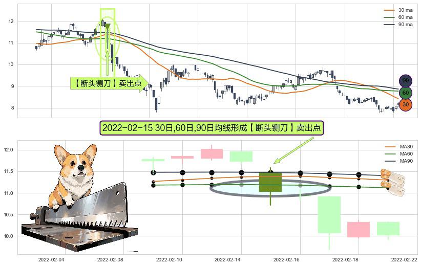 形态多维评估: ⚀ 2022-02-15日显现 30日-60日-90日均线 【断头铡刀】卖出点 看空信号,后市看跌,卖出
