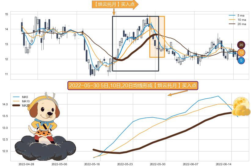 ⚀ 2022-05-13日-2022-06-15日显现 5日-10日-20日均线 【烘云托月】买入点 看多信号,后市看涨,买入