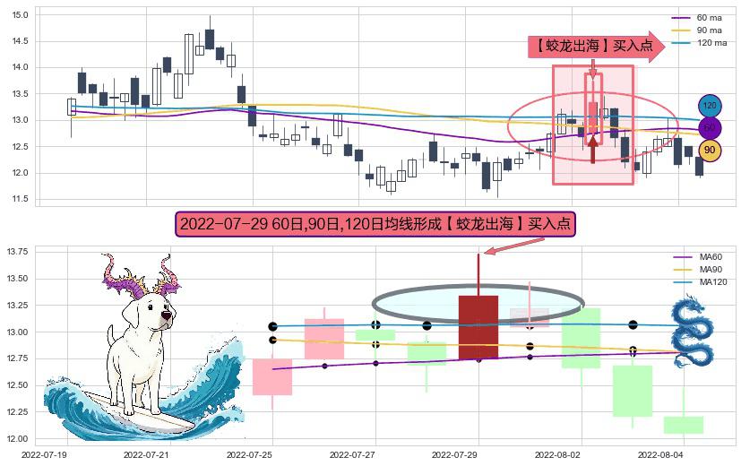 ⚀ 2022-07-29日显现 60日-90日-120日均线 【蛟龙出海】买入点 看多信号,后市看涨,买入