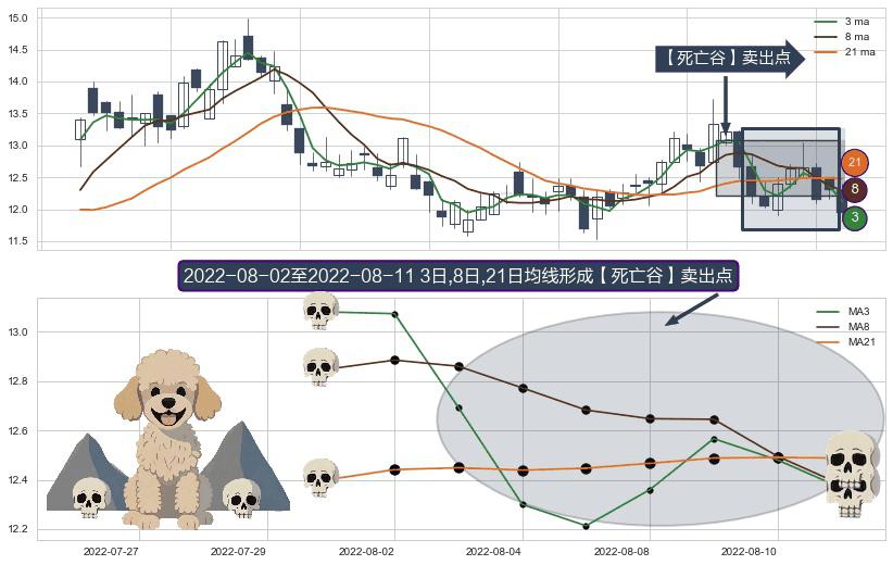 ⚀ 2022-08-03-日至2022-08-11-日显现 3日-8日-21日均线 【死亡谷】卖出点 看空信号,后市看跌,卖出