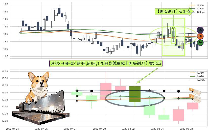 ⚀ 2022-08-02日显现 60日-90日-120日均线 【断头铡刀】卖出点 看空信号,后市看跌,卖出
