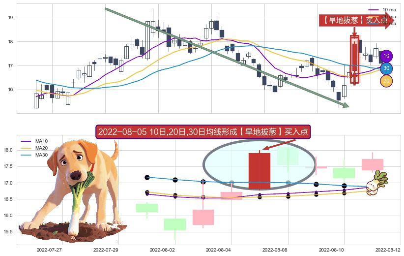 ⚀ 2022-08-05日显现 10日-20日-30日均线 【旱地拔葱】买入点 看多信号,后市看涨,买入