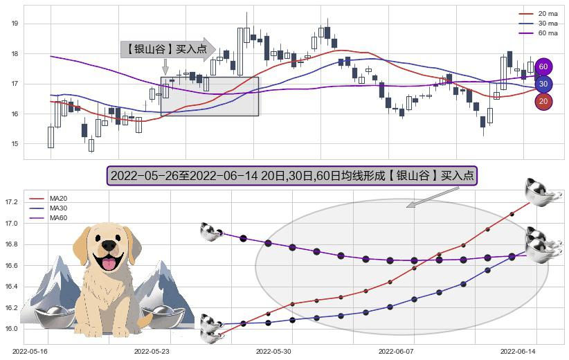 ⚀ 2022-05-27-日至2022-06-14-日显现 20日-30日-60日均线 【银山谷】买入点 看多信号,后市看涨,买入