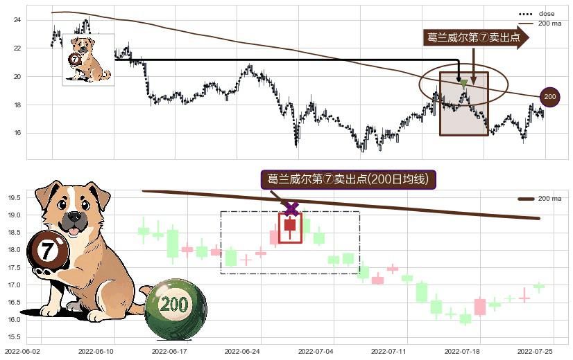 ⚀ 2022-06-28-日显现 葛兰威尔均线 200日均线 第⑦卖出点 下降趋势的中继信号,后市看跌,卖出信号