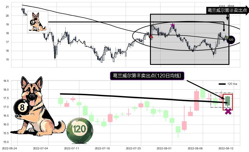 ⚀ 2022-08-12-日显现 葛兰威尔均线 120日均线 第⑧卖出点 下降趋势的中继信号,后市看跌,卖出信号