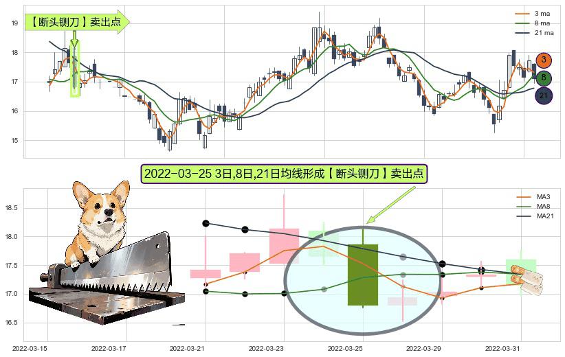 ⚀ 2022-03-25日显现 3日-8日-21日均线 【断头铡刀】卖出点 看空信号,后市看跌,卖出