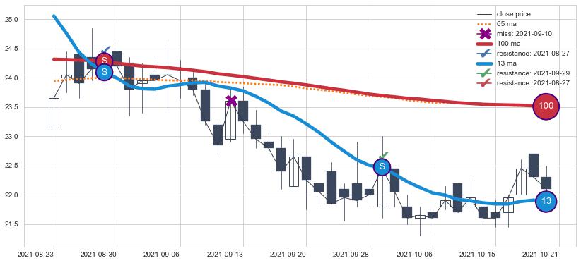 ⚀ 中期均线MA13上穿长期均线MA21形成的交叉是普通交叉并非 黄金交叉