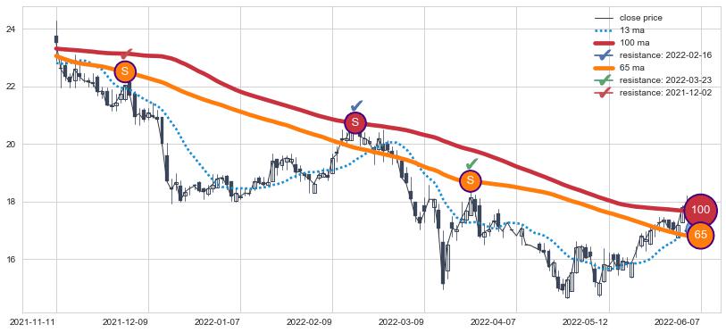 ⚂ 2022-06-10-日均线向上突破,2022-08-12-日重新下穿均线破位,均线阻力再次生效