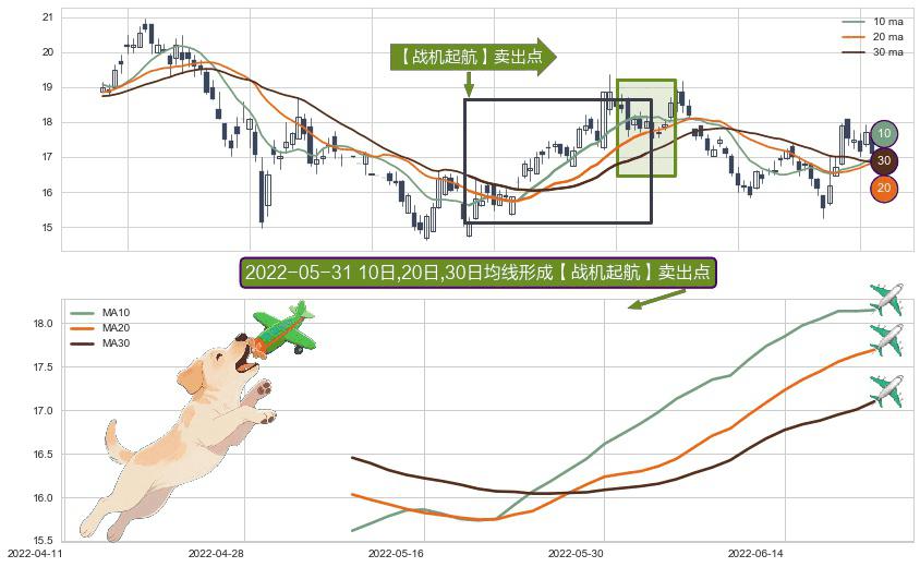 ⚀ 2022-05-10日-2022-06-21日显现 10日-20日-30日均线 【战机起航】卖出点 看空信号,后市看跌,卖出