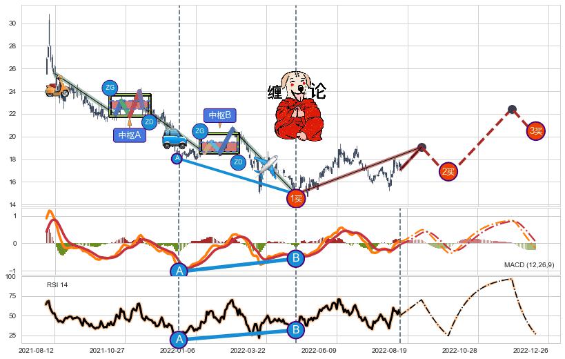 ➢ 智能识别已发生事件:缠论第一类买点【买❶】→(2022-04-26: 14.92 )