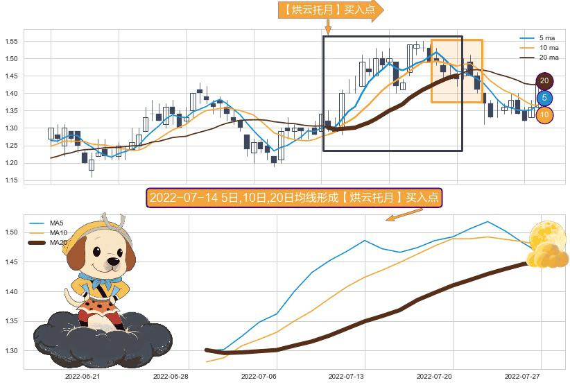 ⚀ 2022-06-29日-2022-07-27日显现 5日-10日-20日均线 【烘云托月】买入点 看多信号,后市看涨,买入