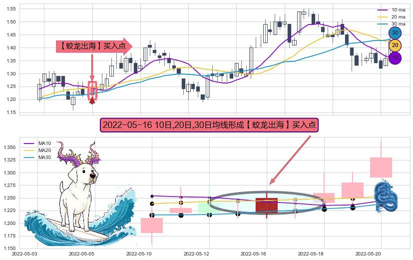 ⚀ 2022-05-16日显现 10日-20日-30日均线 【蛟龙出海】买入点 看多信号,后市看涨,买入