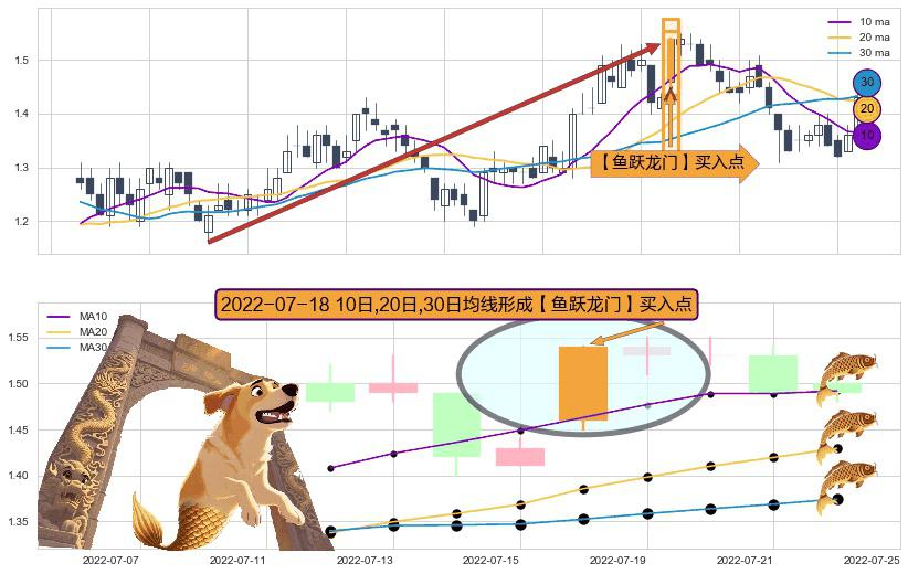 ⚀ 2022-07-18日显现 10日-20日-30日均线 【鱼跃龙门】买入点 看多信号,后市看涨,买入