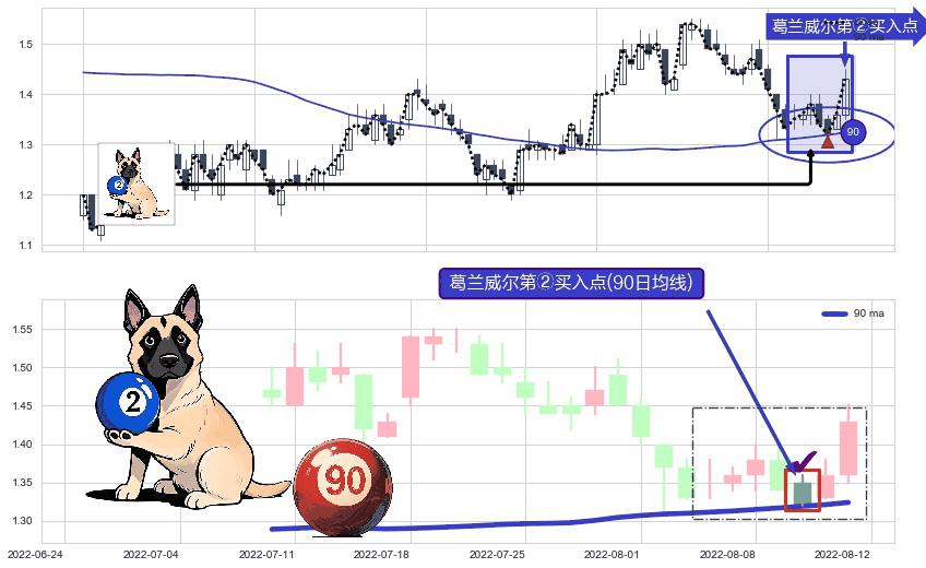 ⚀ 2022-08-10-日显现 葛兰威尔均线 90日均线 第②买入点 上升趋势的中继信号,后市看涨,买进信号