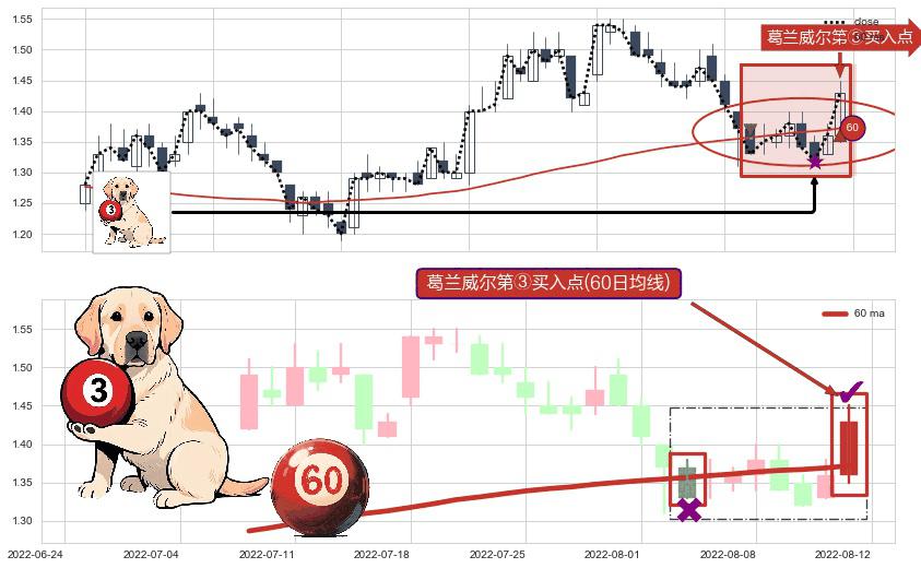 ⚀ 2022-08-12-日显现 葛兰威尔均线 60日均线 第③买入点 上升趋势的中继信号,后市看涨,买进信号