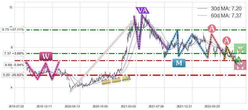 ♘ 支撑价格位5.20,可信任强度70.16%,距离最后交易2022-08-12形成的收盘价格7.11相差 -26.83%