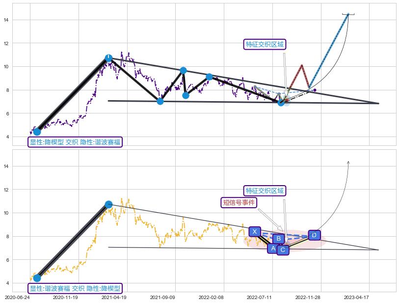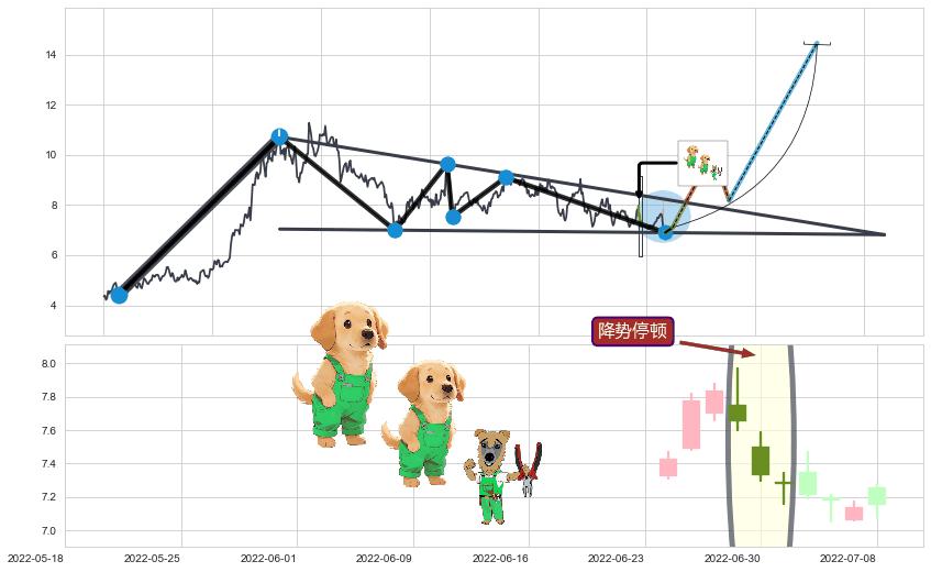 | 2 🅚:冉冉上升|稳步上涨 ➕ 📐:降楔型猜想突破点临近,临近关键阻力位,预期拉升突破上涨 ☞ 看多信号 ⇥ 【🅚线】交织【图形】⇥ 综合量化分数: 51 | > |