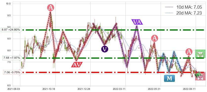 ♘ 阻力价格位8.87,可信任强度89.71%,距离最后交易2022-08-12形成的收盘价格7.11相差 +24.80%