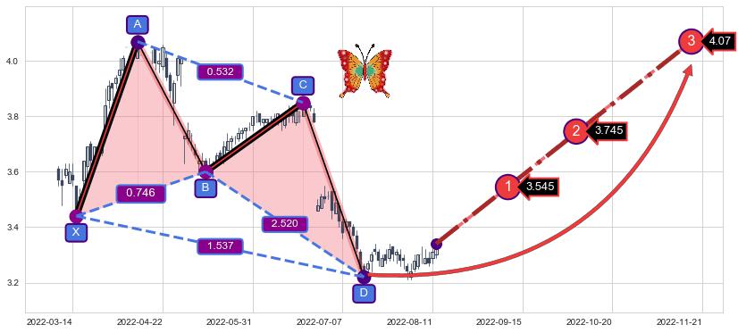 ➣ 已完成【蝴蝶】形态起点X: 2022-03-15, 终点D: 2022-07-15, 共81交易日