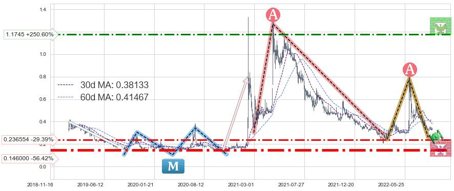 ♘ 支撑价格位0.236554,可信任强度58.04%,距离最后交易2022-08-12形成的收盘价格0.33500相差 -29.39%
