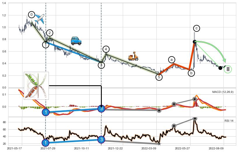 ➢ a,c调整浪MACD, RSI, KDJ走势都【未出现】背离,abc走势延续, 5浪反转概率增强