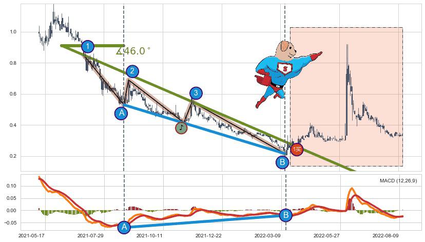 | 4 🅚:降势停顿 ➕ 📐:降楔型向上突破击穿阻力位, 猜想持续拉升上涨,被突破的阻力位已变为支撑位 ☞ 看多信号 ⇥ 【🅚线】交织【图形】⇥ 综合量化分数: 51 | > |