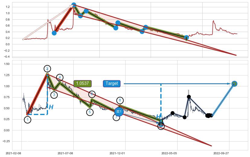 ➢ 【买1】: 激进型 买点 →(2022-03-15: 0.143714 )形成突破降🚩楔型【整理】形态