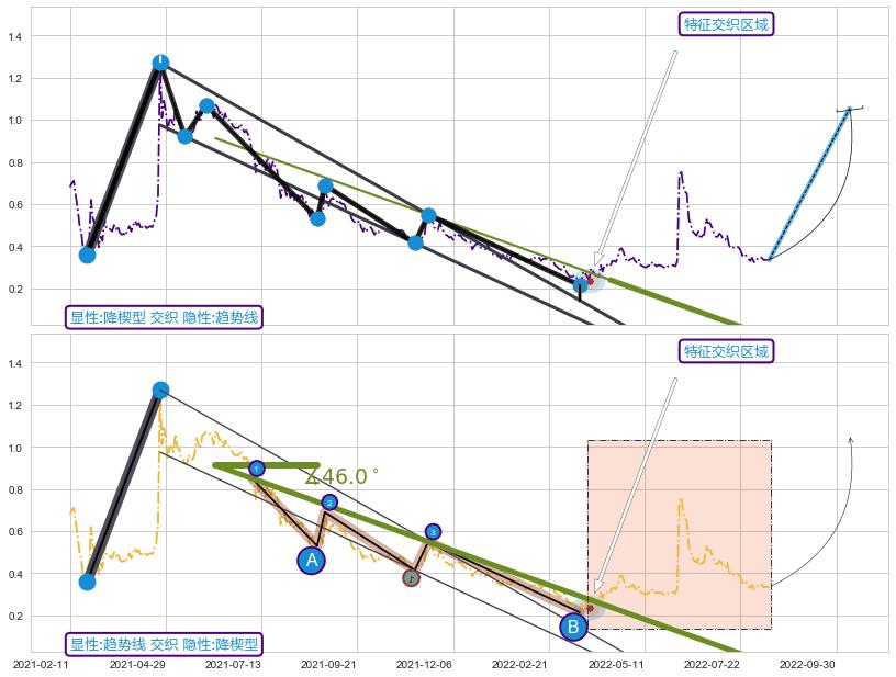 ➢ 最后的下跌趋势2021-06-07至2022-04-08:存在突破迹象,后续小反弹或者反转上涨