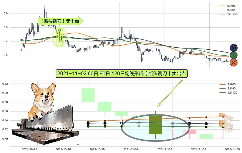 形态多维评估: ⚀ 2021-11-02日显现 60日-90日-120日均线 【断头铡刀】卖出点 看空信号,后市看跌,卖出