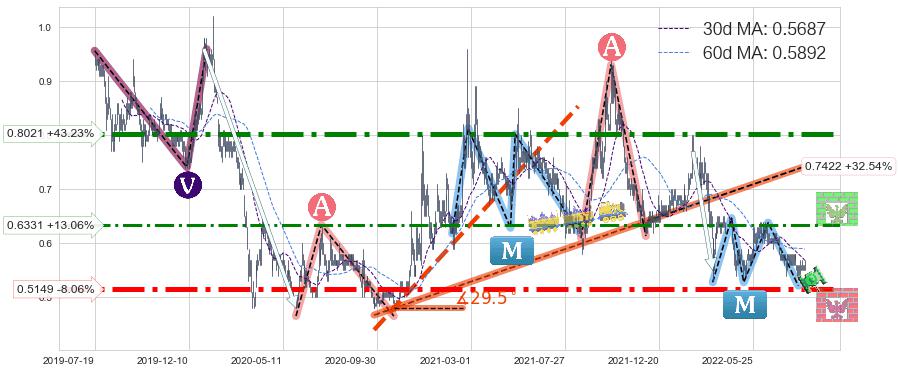 ➣ 【已确认突破】最后价格:0.5600与最小【整理】第一目标价格→(2022-09-30: 0.251290 )相较: 下跌空间【较大】