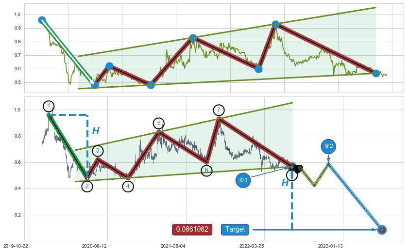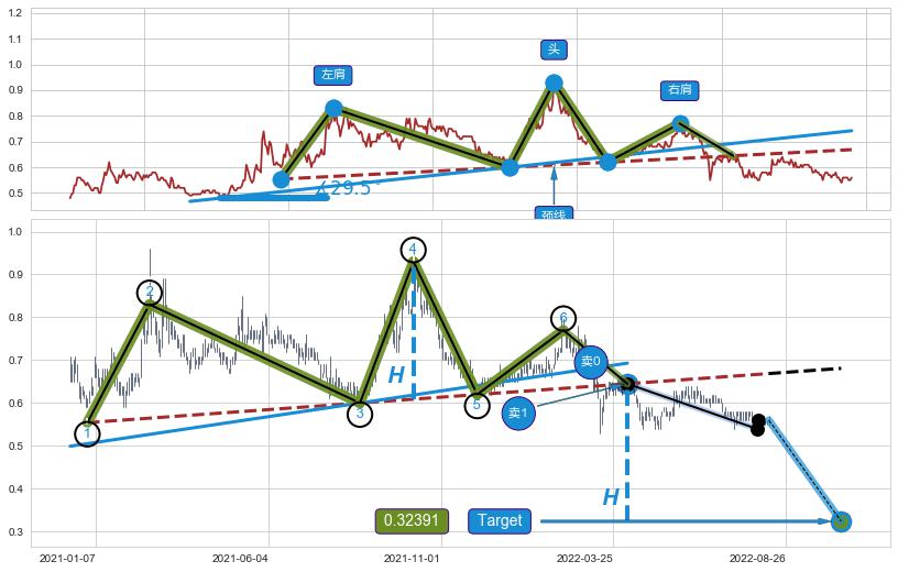 ➣ 最小反转跌幅→𝐇: 0.32101 (头部与颈线垂直距离)
