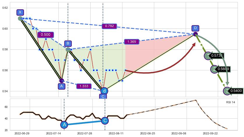 ➢ 谐波价格A点比C点高 ⤴,【RSI】指标A点比C点低 ⤵️