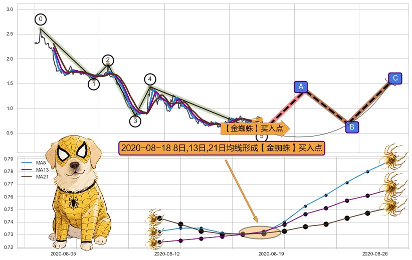 | 3 🅚:【高山滑雪】买入点 ➕ 🌊:波浪理论猜想下跌浪5已形成,猜想后续形成abc反弹上涨(均值回复) ☞ 看多信号 ⇥ 【均线】交织【图形】⇥ 综合量化分数: 58 | > |