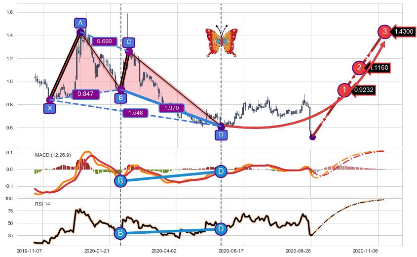 ➣ 已完成【蝴蝶】形态起点X: 2019-11-14, 终点D: 2020-05-25, 共129交易日